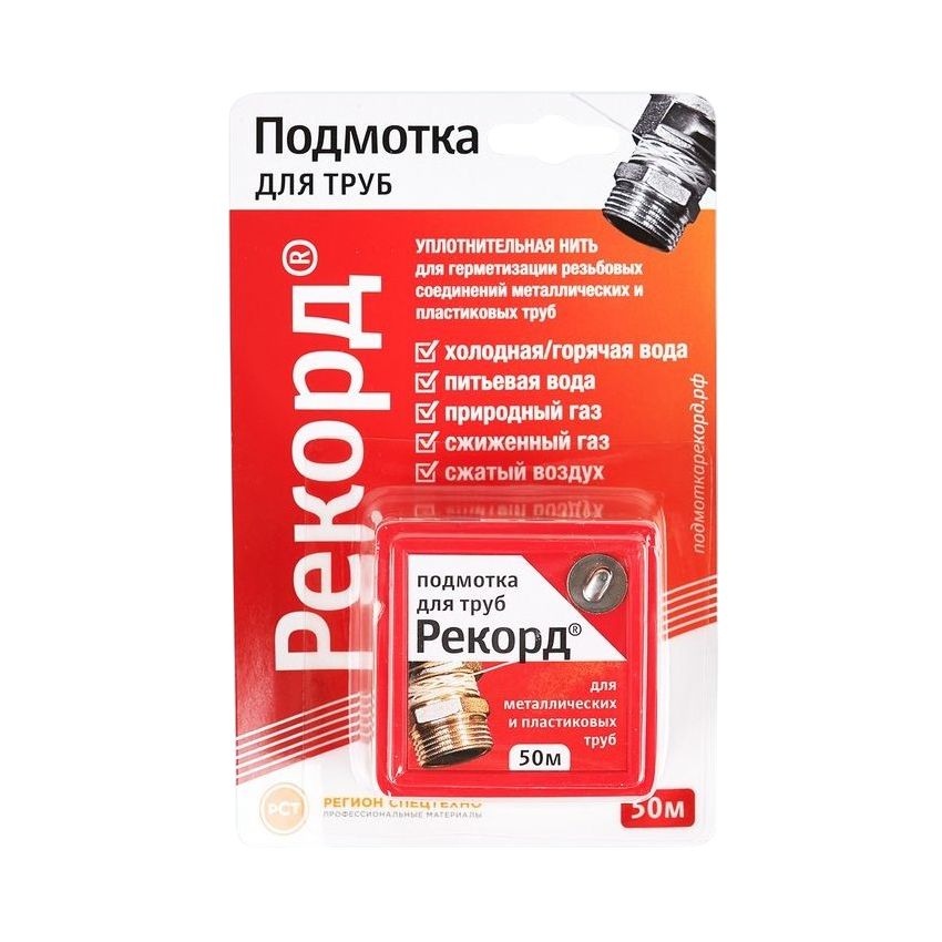 Подмотка Рекорд — это полимерная нить, пропитанная специальным герметизирующим составом — уплотнительный материал последнего поколения, который обеспечивает надежную герметизацию и защищает соединение от коррозии.