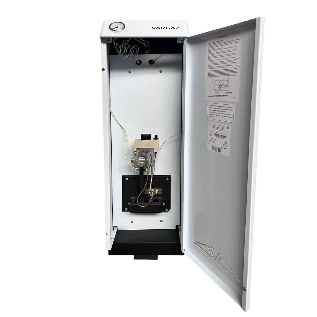 Напольный газовый котел VARGAZ АОГВK-11.6 — практичное решение для отопления частного дома, дачи или небольшого коммерческого помещения. Модель рассчитана на стабильную работу в российских условиях и подходит тем, кто ценит простое управление, понятное обслуживание и аккуратную установку без лишних переделок. Котел выполнен в прямоугольном корпусе: он удобно становится у стены, экономит пространство и аккуратно смотрится в котельной.