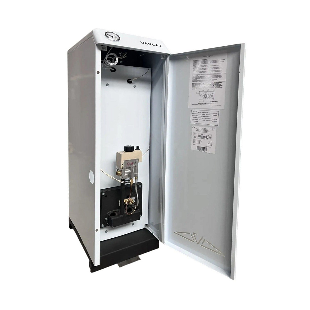 Напольный газовый котел VARGAZ АОГВK-17,4 — практичное решение для отопления частного дома, дачи или небольшого коммерческого помещения. Модель рассчитана на стабильную работу в российских условиях и подходит тем, кто ценит простое управление, понятное обслуживание и аккуратную установку без лишних переделок. Котел выполнен в прямоугольном корпусе: он удобно становится у стены, экономит пространство и аккуратно смотрится в котельной.