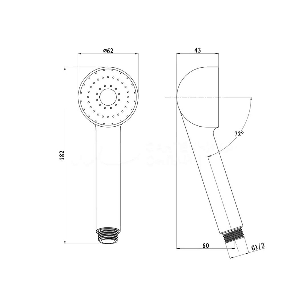 Лейка выполнена из высококачественного ABS-пластика, стойкого к повреждениям. Диаметр лейки составляет 62 мм, что обеспечивает оптимальное покрытие струями воды. Длина ручки удобна для использования людьми любого роста. Стандартное резьбовое соединение ½ дюйма гарантирует лёгкость установки и совместимость с большинством душевых систем.